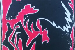 A collage inspired by the C15th mural at St Mary’s Church, Wissington on the Essex Suffolk border.